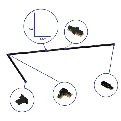 | Herstellername | Complete L shaped 1-Phase Track Set Black – 1,5 x 2 meter incl. End Cap, Power Connector and L -Con | |