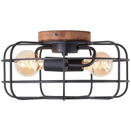 Brilliant Gwen Deckenleuchte Metall Holz Schwarz | 400mm - Geeignet für 2x E27