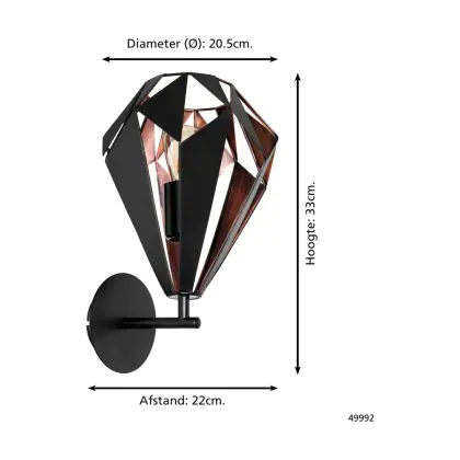 Eglo Wandleuchte Carlton 1 Stahl Schwarz Bernstein | IP20 - Geeignet für 1x E27