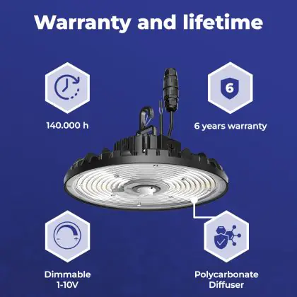 | Herstellername | Budgetlight LED Highbay Concord IP65 V4.0 100/120/150/200W 3CCT(4000/5200/6500K) 90° 0-10V with openhook | |