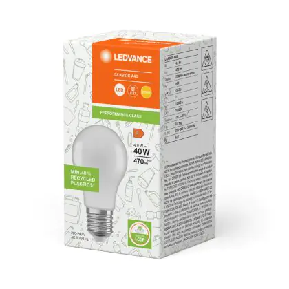 Ledvance Classic LED E27 Birne Matt 4.9W 470lm - 827 | Ersatz Für 40W - Recycelt