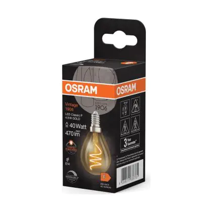 Osram Vintage 1906 LED Classic E14 Birne Fadenlampe Gold 4.9W 470lm - 922 | Höchste Farbwiedergabe - Dimmbar - Ersatz Für 40W