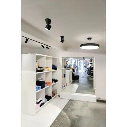 Eine Leuchte mit kippbarem Design ermöglicht es, das Licht gezielt auf ein Objekt oder eine Fläche zu richten. Dies spielt insbesondere in Geschäften eine wichtige Rolle, um z. B. eine neue Kollektion ins Rampenlicht zu setzen, oder in Galerien, um Kunstwerke hervorzuheben. Zudem kann es das Kaufverhalten oder die Wahrnehmung der Besucher beeinflussen.