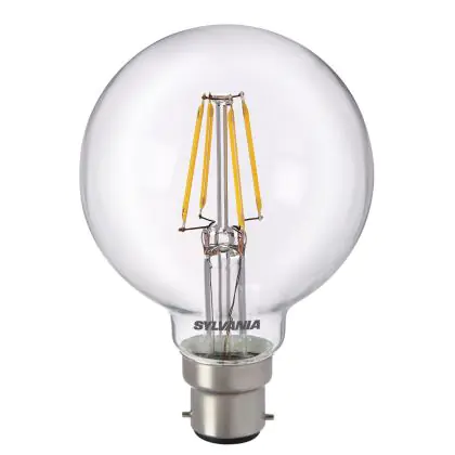 Sylvania Retro ToLEDo B22 Globe 80mm Fadenlampe Klar 5W 640lm - 827 | Ersatz für 60W