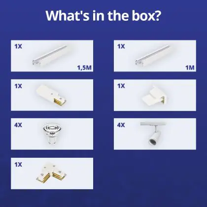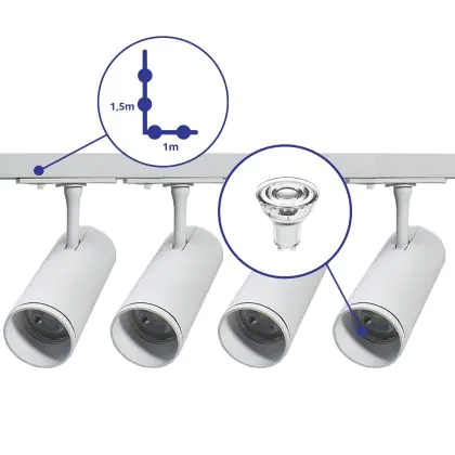 Description Bright Choice Ensemble complet Rail Monophasé Rail L 1 x 1,5 Mètre Blanc | incl. 4x Spot + GU10 2700K 3W Dimmable + Embout, Connecteur d’Alimentation et L -Connecteur