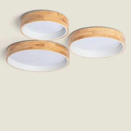Bright Choice Plafonnier Ronde Bois Métal Blanc 15W 1000lm - 830-840-860 CCT