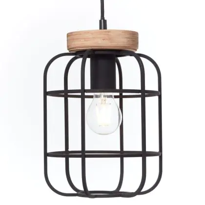 Brilliant Gwen Suspension Luminaire Métal Bois Noir | Convient pour 3x E27