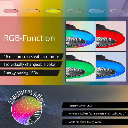 | Nom du fabricant | Salrno Ceiling Lamp + Fan LED 40W (4700lm, 3000K-6500K, CCT, Dimmable, ICRGB, RC, Night Light, | |