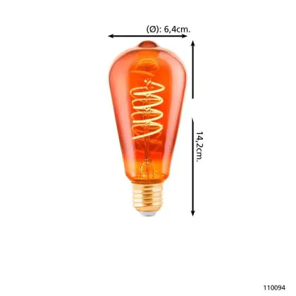 Description Eglo LED Edison E27 Filament Ambre 4W 30lm - 820 | Dimmable - Remplacement 15W