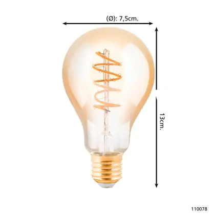Description Eglo LED Poire E27 Filament Ambre 4W 245lm - 820 | Dimmable - Remplacement 25W