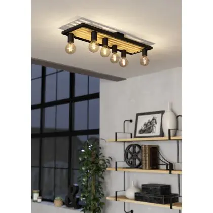 Eglo Plafonnier Consett Échantillon Bois Noir Brun | IP20 - Convient pour 6x E27
