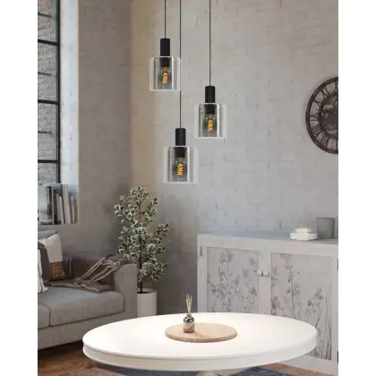 Eglo Suspension Luminaire Gorosiba Échantillon Noir | IP20 - Convient pour 3x E27