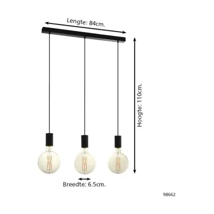 Eglo Suspension Luminaire Pozueta Échantillon Noir | IP20 - Convient pour 3x E27