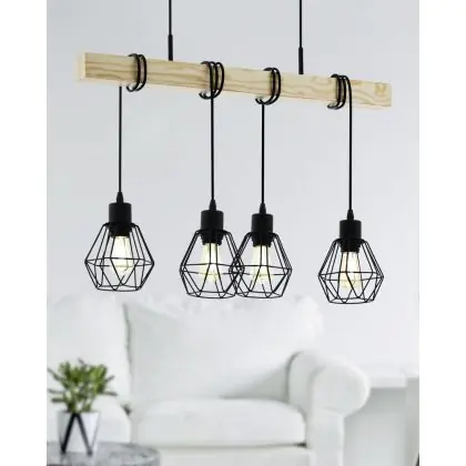 Eglo Suspension Luminaire Townshend 5 Échantillon Bois Noir | IP20 - Convient pour 4x E27