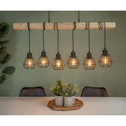 Eglo Suspension Luminaire Townshend 5 Échantillon Bois Noir | IP20 - Convient pour 6x E27