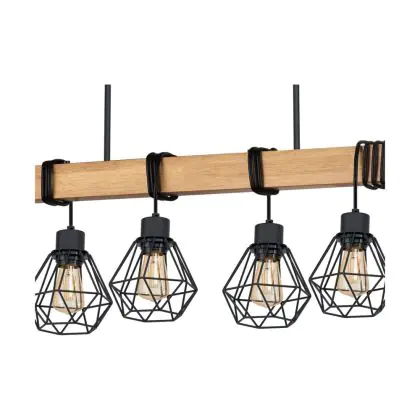 Eglo Suspension Luminaire Townshend 5 Échantillon Bois Noir | IP20 - Convient pour 9x E27
