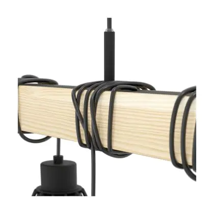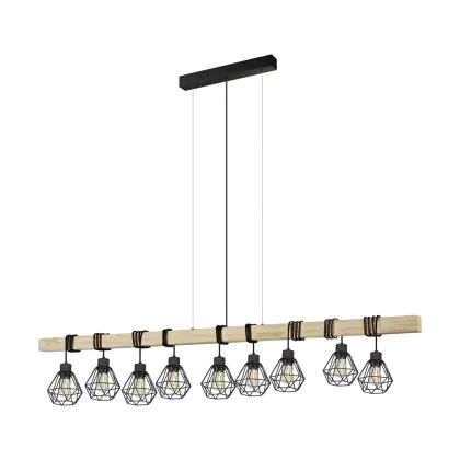 Eglo Suspension Luminaire Townshend 5 Échantillon Bois Noir | IP20 - Convient pour 9x E27