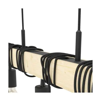 Eglo Suspension Luminaire Townshend Bois Échantillon Brun Noir | IP20 - Convient pour 9x E27