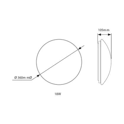 Description Hublot LED Blanc 18W 1386lm - 830 | 360mm - IP44 - Éclairage de secours 1 heures