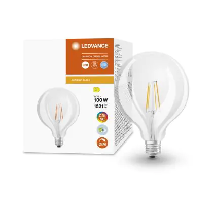 Description Ledvance Superior Classic LED E27 Globe Filament Claire 11W 1521lm - 940 | Meilleur rendu de couleur