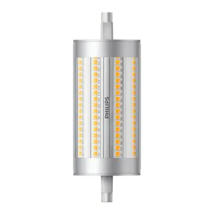 Lot 10x Philips Corepro LED Lineair R7s 118mm 17.5W 2460lm - 840 | Dimmable - Remplacement 150W est une ampoule tubulaire linéaire à double extrémité. Ce type d’ampoule permet de délivrer une lumière homogène à 360° avec comme température de couleur 4000K - Blanc Froid. Cette ampoule LED R7s de chez Philips est la solution idéale pour le remplacement de vos anciennes ampoules halogènes. Cette ampoule LED n’a pas besoin de transformateur, elle fonctionne avec 230V et peut se connecter directement sur le secteur électrique.