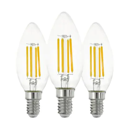 Cette ampoule Lot 3x Eglo LED Bougie E14 Filament Claire 21W 806lm - 827 Blanc Très Chaud | Remplacement 60W avec son efficacité lumineuse de lumen par watt vous permettra de profiter d’un éclairage de qualité. Avec sa durée de vie de 15000 heures, vous n’aurez pas à vous soucier de son remplacement avant quelques années.