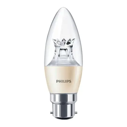 Description Philips MASTER LED Bougie B22 Couronne Bent-tip Claire 4W 250lm - 822-827 Dim To Warm | Dimmable - Équivalent 40W